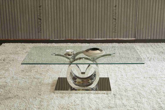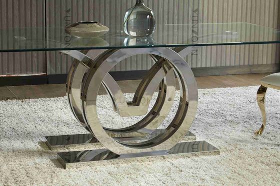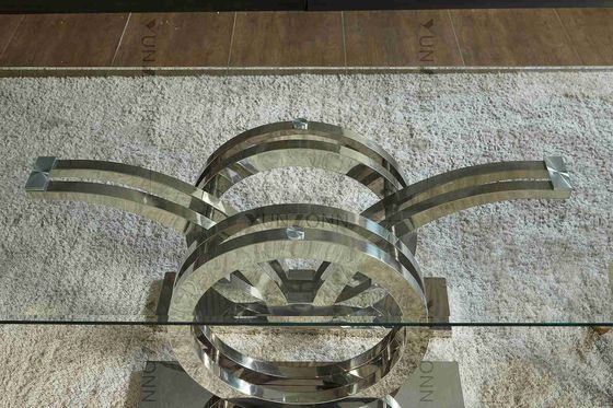 Desain Seagulls Stainless Steel Base Kaca Bingkai Meja Makan Atas Perak