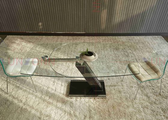 Meja Makan Model Fleksibel Multi Fungsi yang Dapat Diperpanjang Dengan Ekstensi Atas Kaca Dua Daun