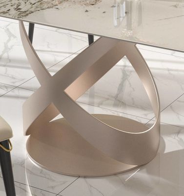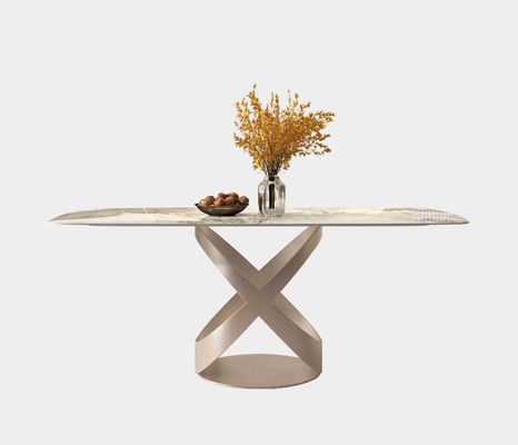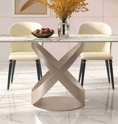 Meja makan mewah set dengan X Stainless Steel Base