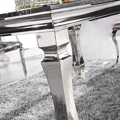 Meja Makan Marmer Kaki Meja Prismatik 8 Kursi Perabotan Rumah Perak