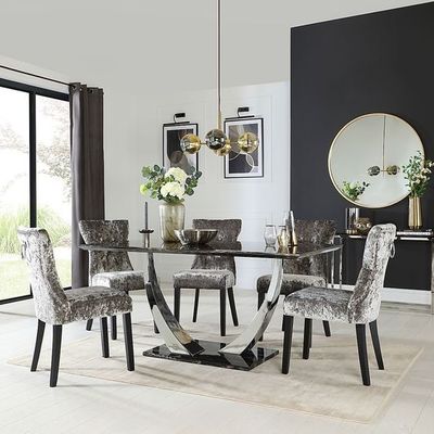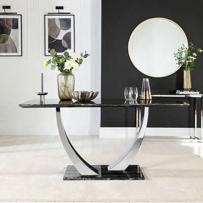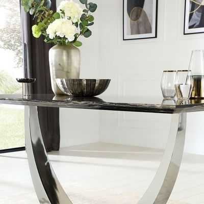 Meja makan perak stainless steel marmer hitam chrome ss 150 * 90 * 75 ukuran