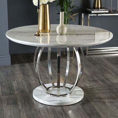 Savory Marmer top ss stainless steel meja makan perak dengan kursi set