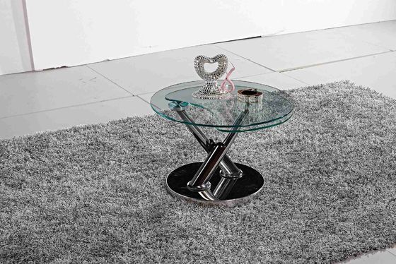 Meja Kaca Bulat Atas Dengan Meja Samping X Dasar Logam Meja Kecil