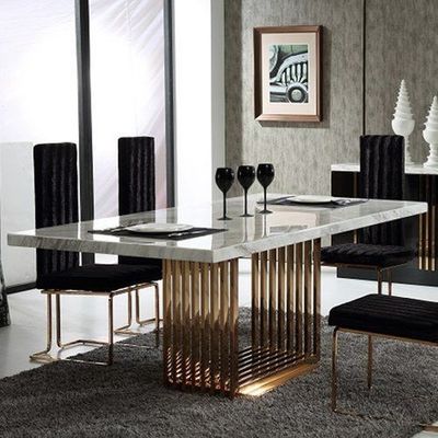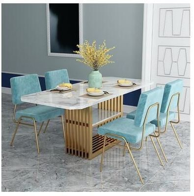 Meja makan atas marmer Nordic set meja modern persegi panjang 150*90*75 kombinasi meja dan kursi
