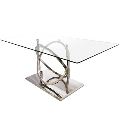 Meja Makan Logam Perak Mewah Dengan Kaca Bening Untuk Ruang Makan