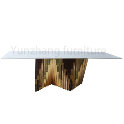 Meja Makan Emas Mewah Tidak Beraturan Basis Logam Dengan Bagian Atas Meja Marmer