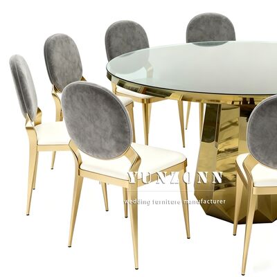 Grosir Mewah Logam dan Kain Abu Bulat Kembali Menumpuk Emas Hotel Banket Wedding Event Kursi untuk Dijual |