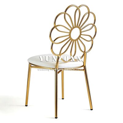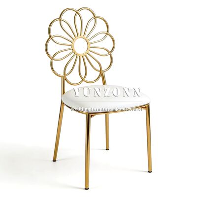 | Nama produk: | Perjamuan Menumpuk Pesta Pernikahan Bingkai Emas Dekorasi makan Metal Rental Furniture Event Chair |