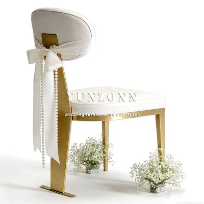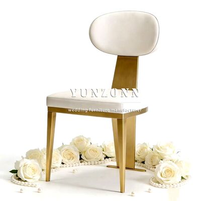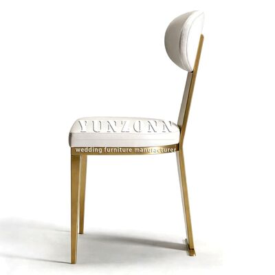 Emas stainless steel pernikahan kursi makan kain kulit sintetis furnitur makan kursi restoran |