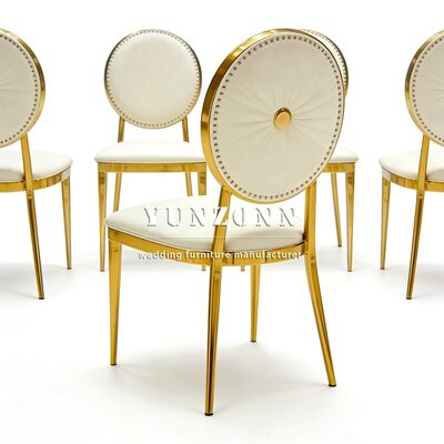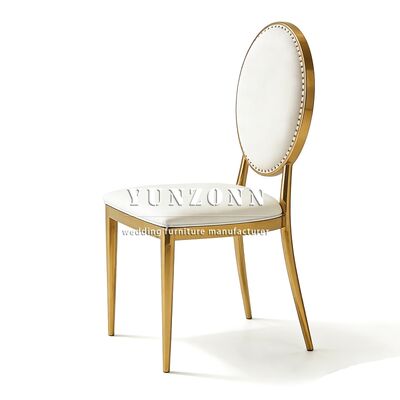 | Nama produk: | SLuxury Putih PU Kulit Stainless Steel tahan lama kursi pernikahan untuk Hotel Makan di luar ruangan Villa ruang tamu Penggunaan dengan desain modern |