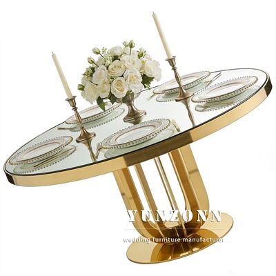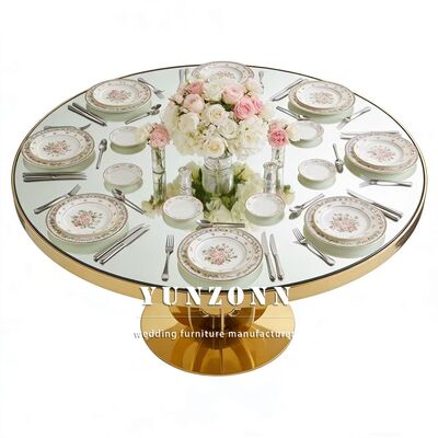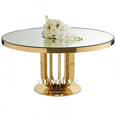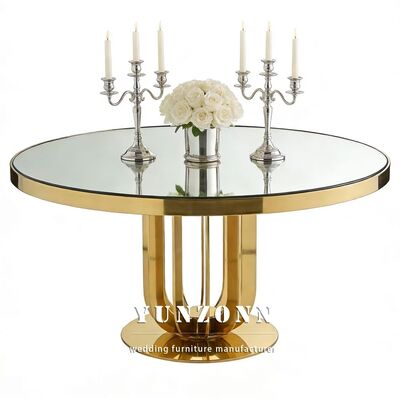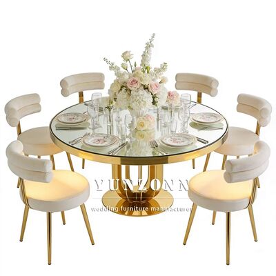 | Nama produk: | Meja Pernikahan Baja Karet Tempered Glass Top untuk Hotel Restoran Banket Makan Acara-Mebel Hotel tahan lama Grosir |