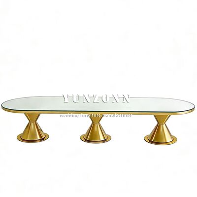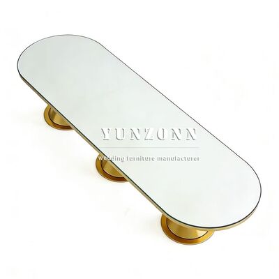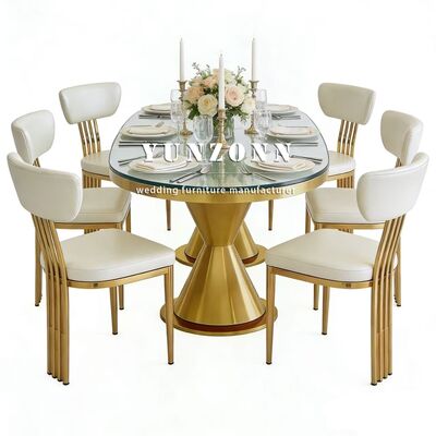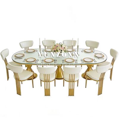 | Nama Produk: | Meja Makan Pernikahan Outdoor Oval Modern Mewah Baru Kedatangan Kaki Stainless Steel Emas dengan Atasan Kaca Tempered Furnitur Hotel |
