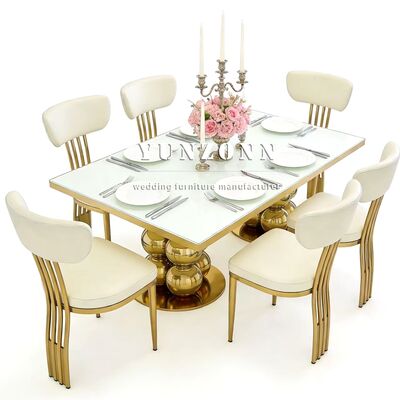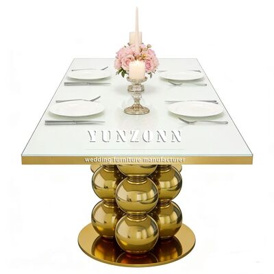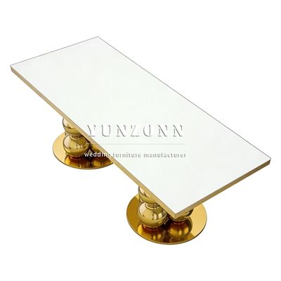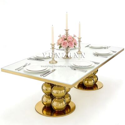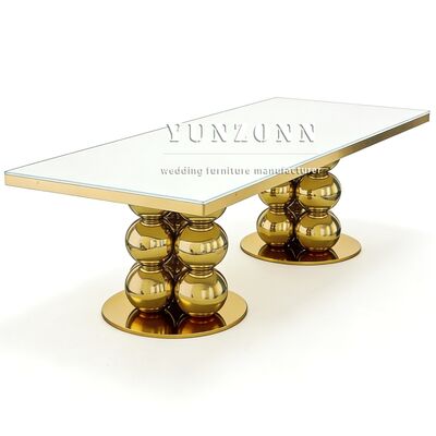 | Nama Produk: | Desain Mewah Modern Meja Pernikahan Emas Kaca Cermin Baja Tahan Karat Furnitur Makan Perjamuan Restoran & Hotel |