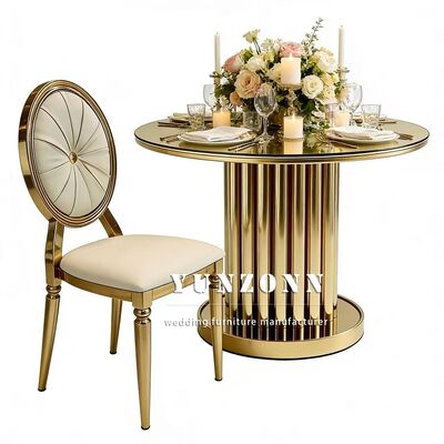 | Nama produk: | Meja makan mewah modern berbentuk bulat kaca atas emas stainless steel Meja makan mewah |