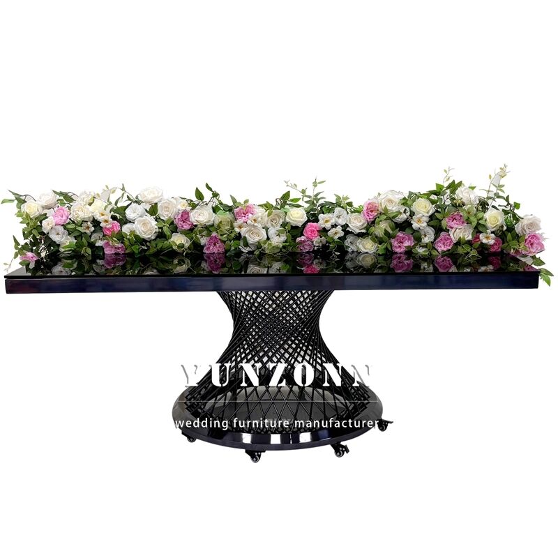 | Nama produk: | Hotel Banket Kaca Atas Meja Makan Hitam Meja Pernikahan Logam persegi panjang Baja tahan karat |