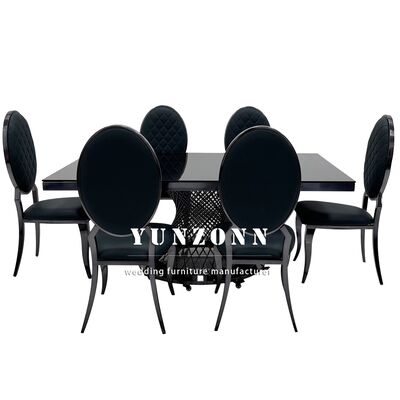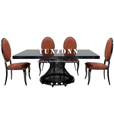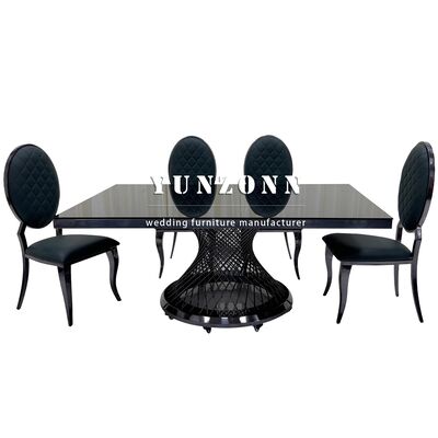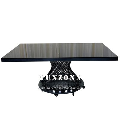 Hotel Banket Kaca Atas Meja Makan Hitam Meja Pernikahan Logam persegi panjang Baja tahan karat