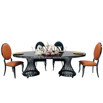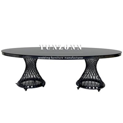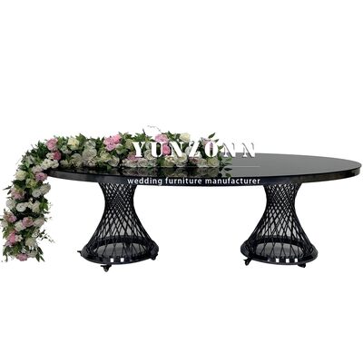 Dekorasi Pernikahan Mewah Meja Pernikahan Stainless Steel Hitam Meja Pernikahan Oval Bergerak