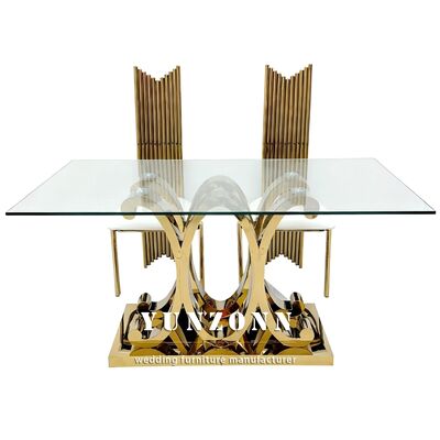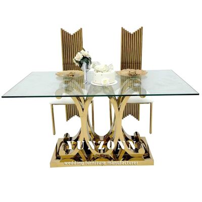 | Nama Produk: | Meja Makan Dekorasi Kaca Persegi Panjang Mewah Modern Kaki Emas Set Meja Stainless Steel untuk Acara Dekorasi Perjamuan Pernikahan |