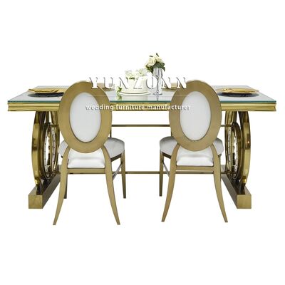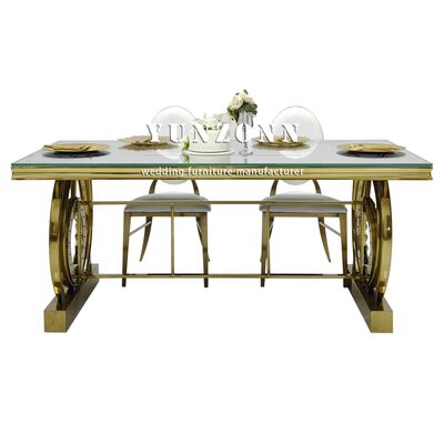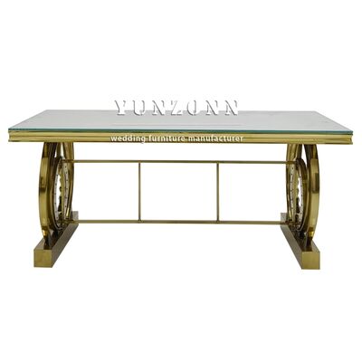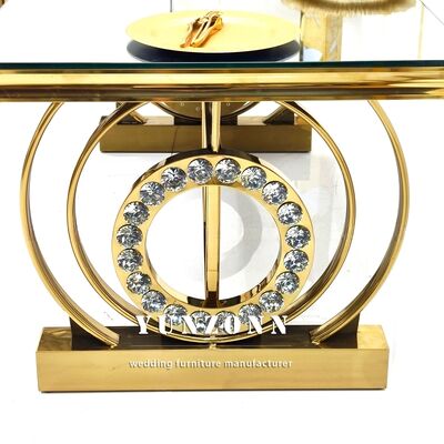 | Nama Produk: | Meja Perjamuan Bingkai Baja Tahan Karat Dekorasi Kristal untuk Pernikahan Hotel Acara Meja Desktop Kaca Cermin Furnitur Hotel |