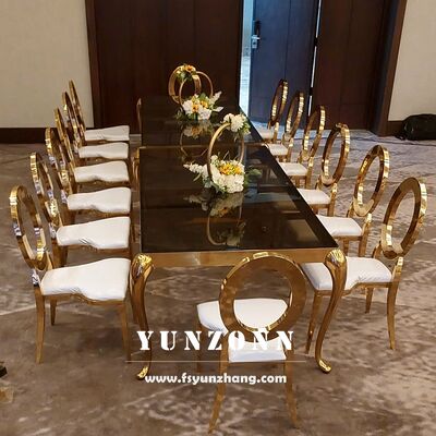 | Nama produk: | Meja makan persegi panjang modern dengan rangka stainless steel dan kaca atas untuk acara luar ruangan untuk pernikahan Hotel |