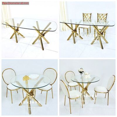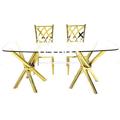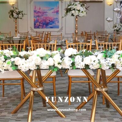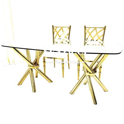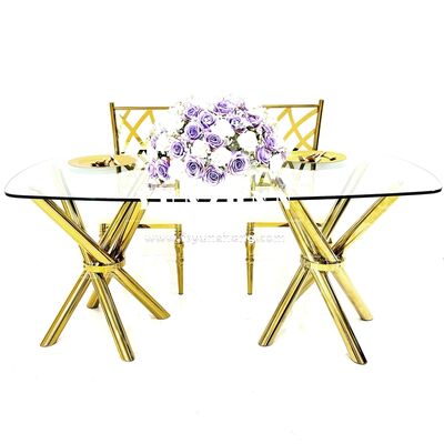 | Nama Produk: | Meja Pesta Pernikahan Kaca Bening Kaki Silang Baja Tahan Karat Emas Murah Ringan dan Stabil |