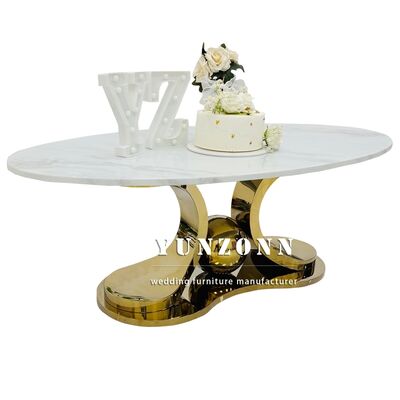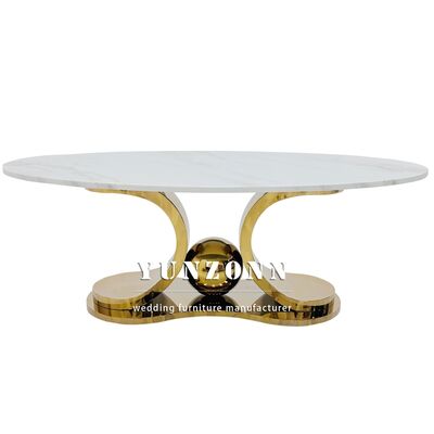 | Nama produk: | Meja Kopi Mewah Furnitur Hotel Meja Marmer Meja Atas Emas Logam Baja Rinsless Sisi Oval Meja Kopi Teh |