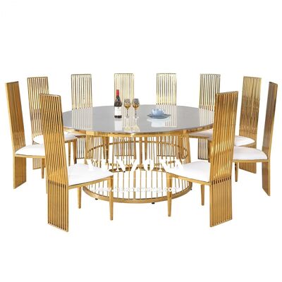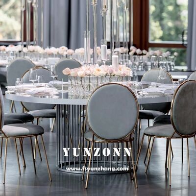 | Nama Produk: | Meja Makan Bulat Stainless Steel Emas untuk Sewa Acara Desain Meja dan Kursi |