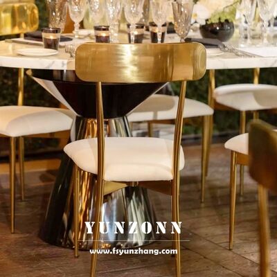 | Nama produk: | Furniture Hotel Elegant Event Gold Stainless Steel Wedding Chair Modern Dengan Bantal Putih |