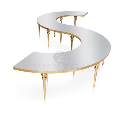 | Nama Produk: | Meja Makan Set Kursi Bentuk S Modern Restoran Pernikahan Kaca Logam Furnitur Hotel untuk Penggunaan Aula Luar Ruangan |