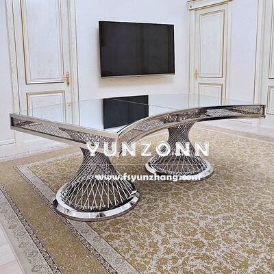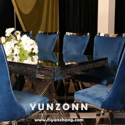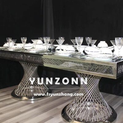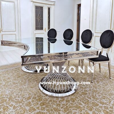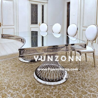 | Nama produk: | Tabel makan dengan cermin kaca atas emas untuk pernikahan dan hotel |