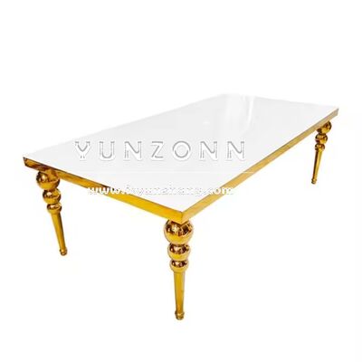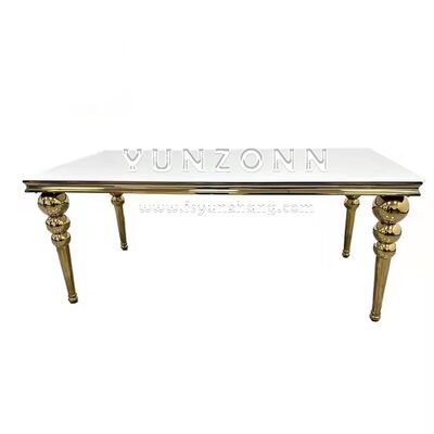 | Nama produk: | Meja makan MDF mewah 12 kursi emas logam persegi panjang pesta makan untuk hotel Meja pusat yang elegan |