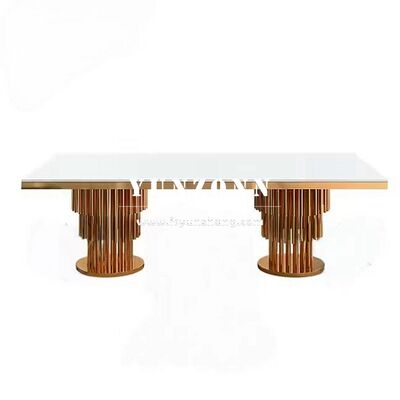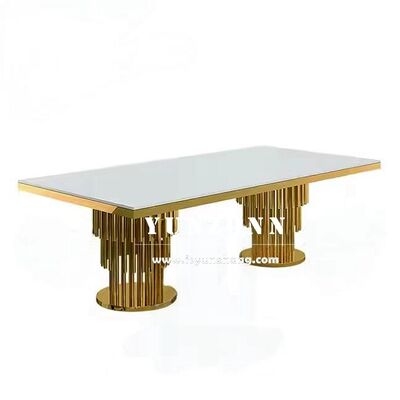 | Nama Produk: | Set Meja Makan Modern Stainless Steel Emas dengan Desain Kaki Pedestal untuk Perjamuan Luar Ruangan, Pernikahan, dan Acara Hotel |