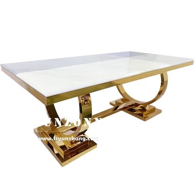 | Product Name: | Luxury Party Events Decorations Gold Legs Table Modern Glass Rectangular Stainless Steel Wedding Banquet Tables |