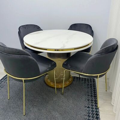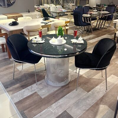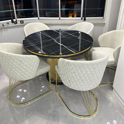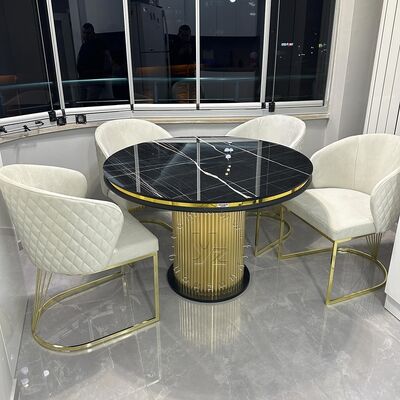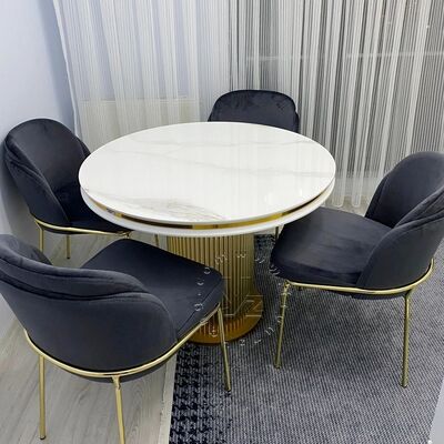| Nama produk: | Meja makan modern emas stainless steel dengan pijakan melingkar Marmer Rumah Villa Hotel Pernikahan Perabotan kontemporer yang bergaya |