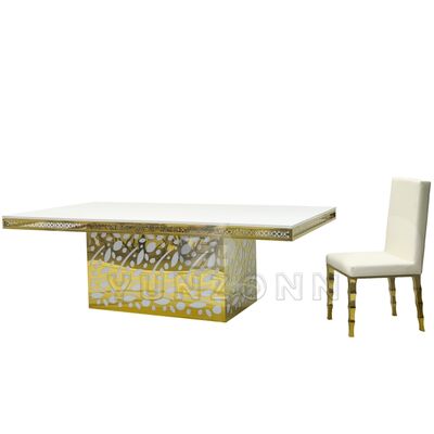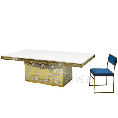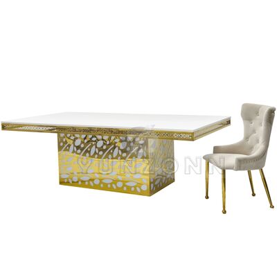 Hotel mewah stainless steel kristal liontin emas kaca pernikahan dan acara meja makan untuk perjamuan restoran dan pesta |
