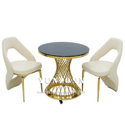 Q3: Apa bahan produk Anda? A3: Rangka meja dan kursi dari stainless steel, kaca tempered di atas meja; marmer atau kayu. Bantalan kursi terbuat dari spons berdensitas tinggi dan kulit atau kain berkualitas tinggi.