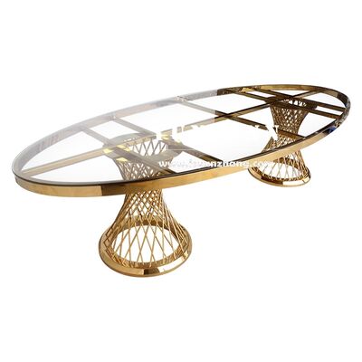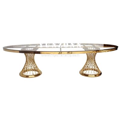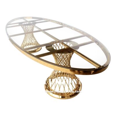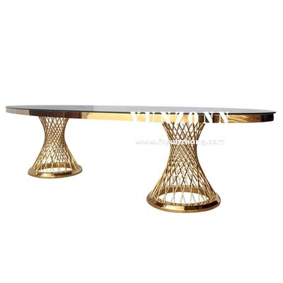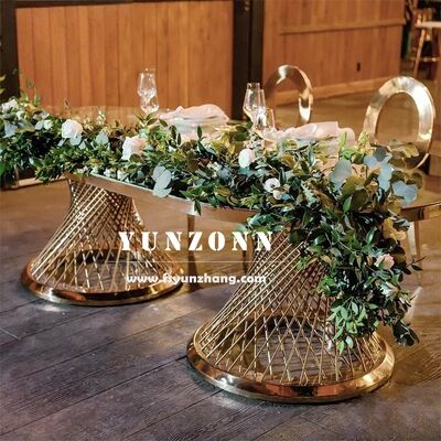 | Nama Produk: | Set Meja dan Kursi Oval Mewah Emas Stainless Steel untuk Pesta Pernikahan dan Furnitur Hotel |