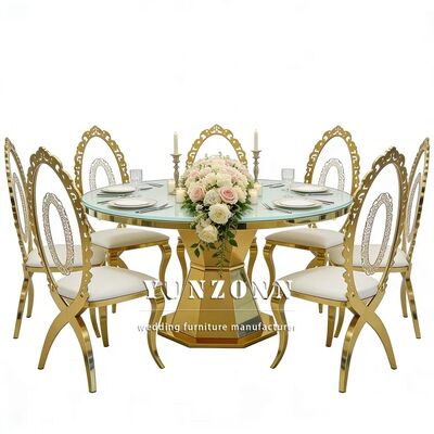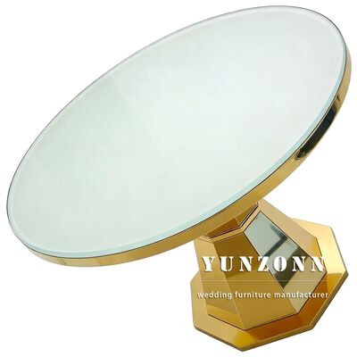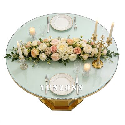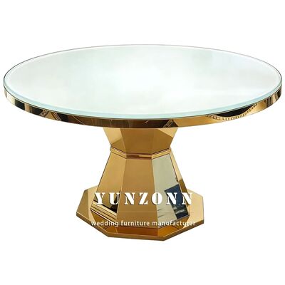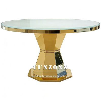 | Nama produk: | Luxury Round Shape Glass Top Gold Base Baja Tidak Berlemak Ruang Makan Pusat Meja Restoran Furnitur |