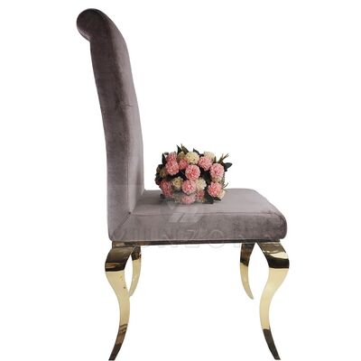 | Nama produk: | Kursi pernikahan baja tahan karat untuk acara luar Banket Hotel Toko Kopi Apartemen Kursi makan berlapis kain beludru |