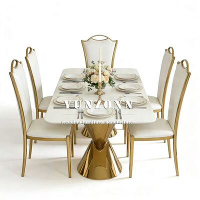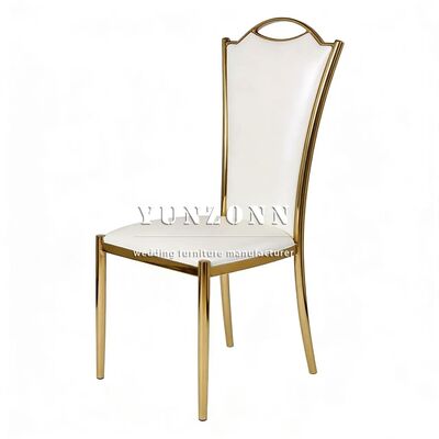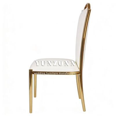 | Nama Produk: | Kursi Makan Perjamuan Modern Stainless Metal dengan PU Putih Grosir Sewa Emas untuk Furnitur Rumah untuk Apartemen Aula Rumah |