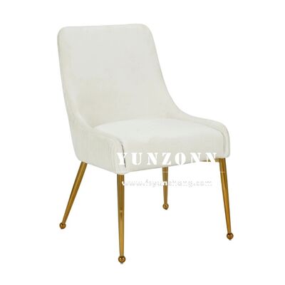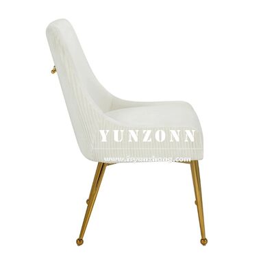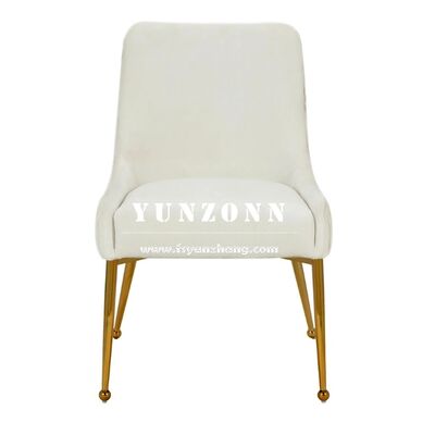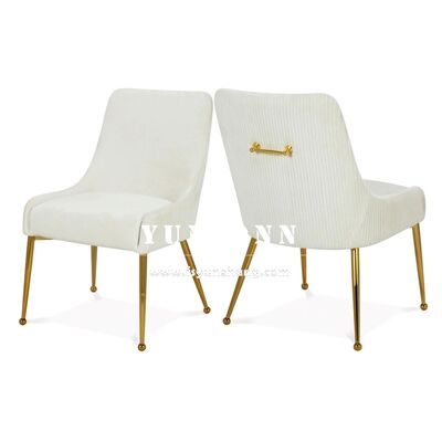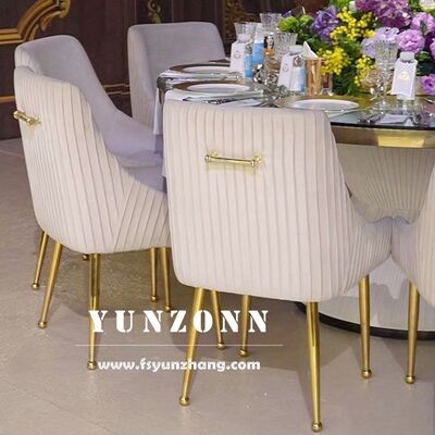 | Nama produk: | Hotel mewah Emas Baja tahan karat Tubular Tufted Handel Line Back Beige Velvet Meja Makan Meja Makan untuk Ruang Makan |