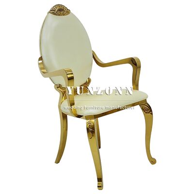 | Nama Produk: | Kursi Tahta Makan Mewah Modern Emas Stainless Steel Sandaran Tinggi Kursi Perjamuan dengan Kulit untuk Hotel dan Pesta |